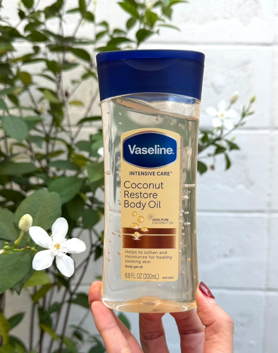 เหลือง Vaseline Intensive Care ** Coconut Restore Body Oil 200ml.