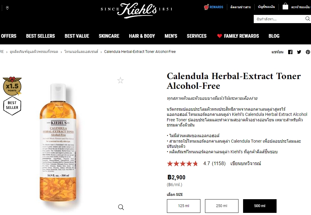 Kiehl's Calendula Herbal Extract Toner Alcohol-Free 500ml. (เคาเตอร์ 3,020฿)